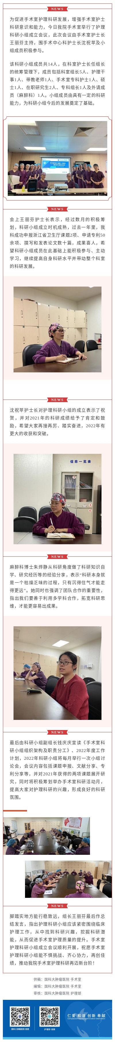 聚焦专科,脚踏实地,行稳致远——我院手术室成立护理科研小组