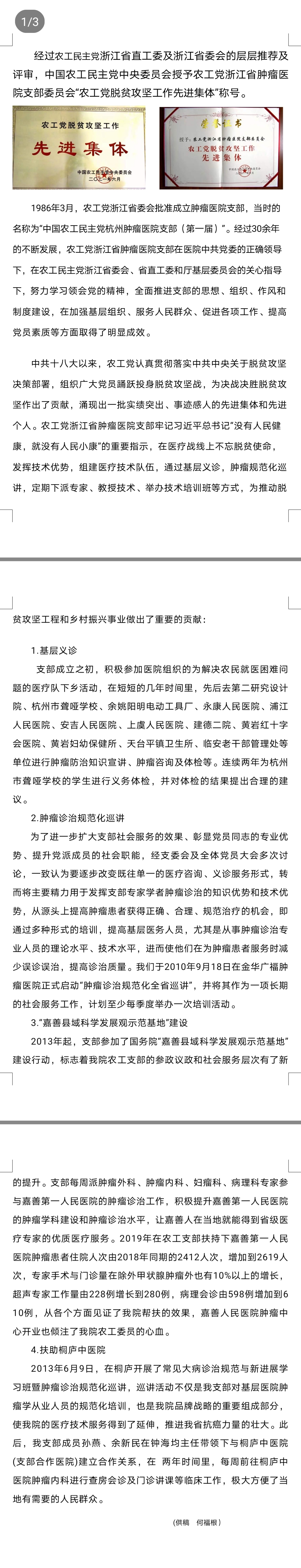 农工党浙江省肿瘤医院支部委员会 喜获“农工党脱贫攻坚工作先进集体”称号