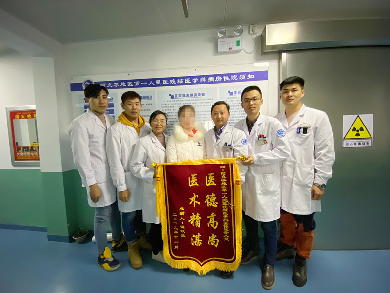康复后的谭女士为了表达对医护人员的谢意,特意定制了锦旗送到核医学科。