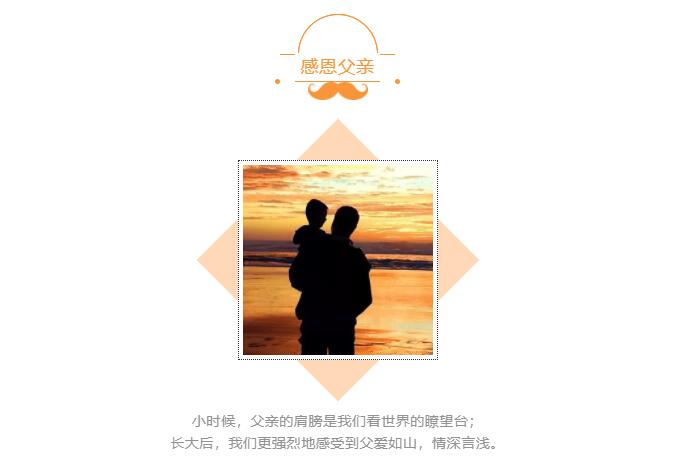 父爱是一座山,挺拔而伟岸;父爱是一片海,浓郁而深远。他或许相貌平凡,但对你露出的笑容总是溢满宠溺;他或许谈吐并不优雅,但絮絮叨叨的都是对你的关心,祝父亲们节日快乐!
