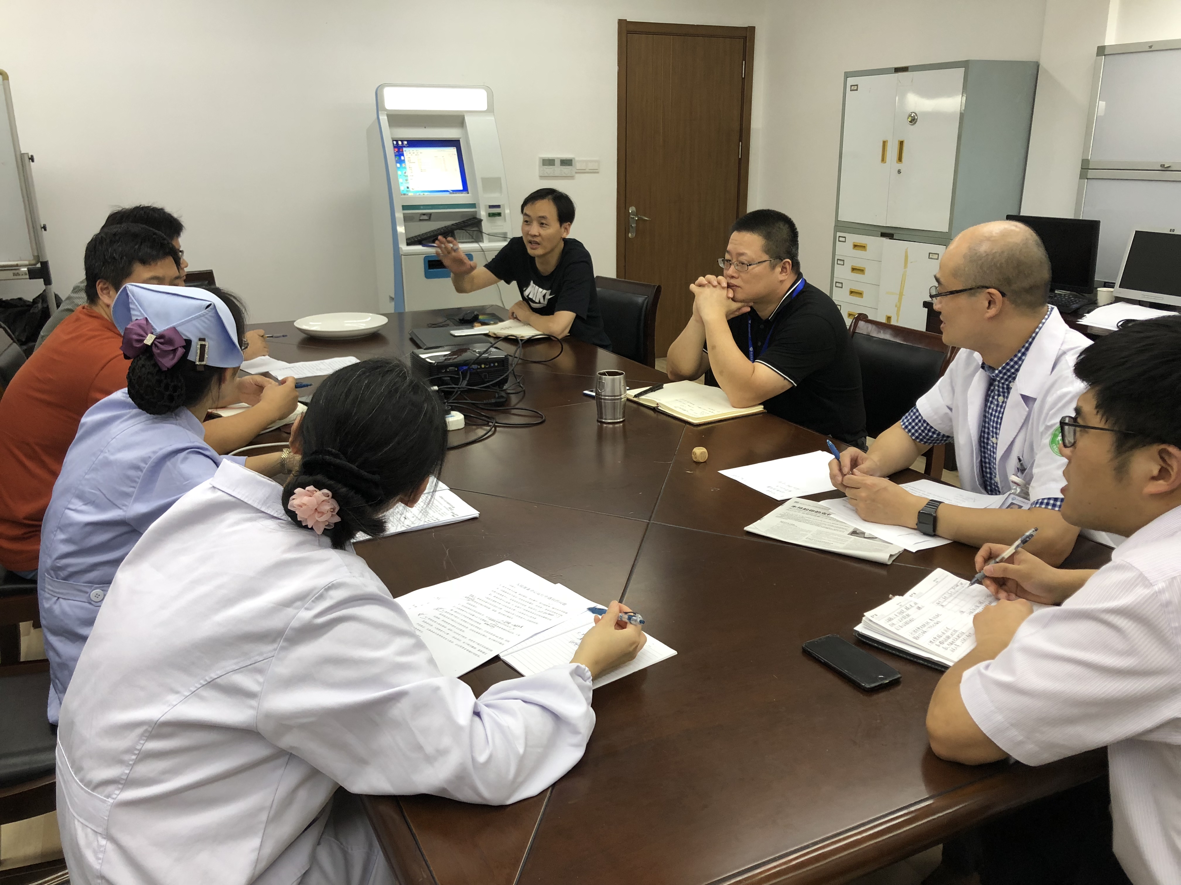 为了优化诊疗流程,给患者提供更好的就医体验,2018年7月23日下午,医务科与信息中心共同召开入院准备中心信息沟通会,就如何改进入院准备中心运行过程中存在的信息壁垒展开了深入而细致的讨论。