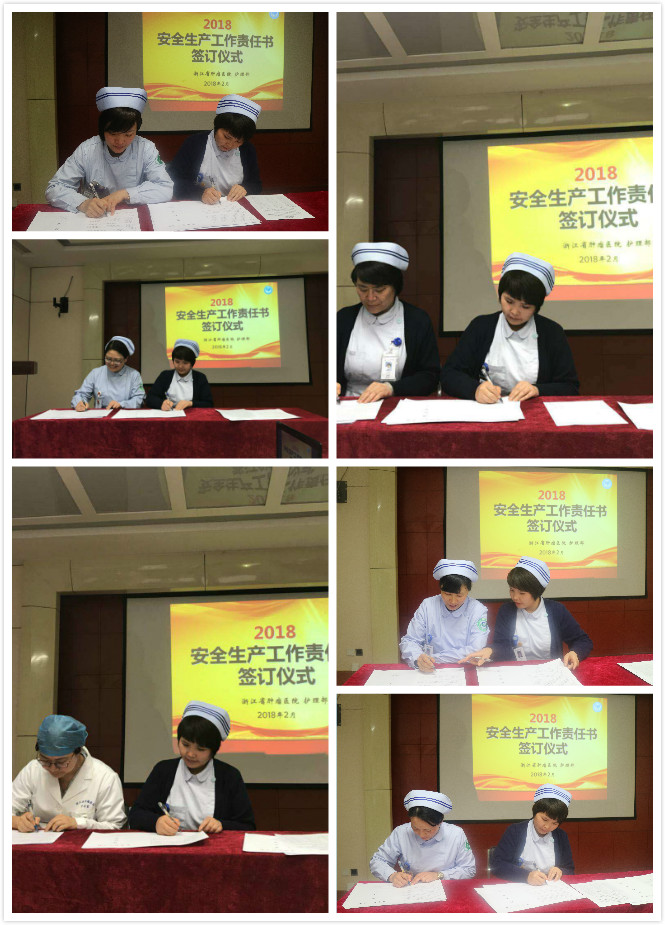 签订仪式上,护理部主任吴婉英与6名科护士长分别签订了安全生产工作责任书及科研诚信承诺书;会后,科护士长还将与分管病区护士长、护士长与科室每位护士签订协议书。通过协议书签订提高护理人员切实履行安全生产的职责、践行科研诚信的原则,从而转化护理人员的安全生产意识、树立严谨诚信的科研作风。