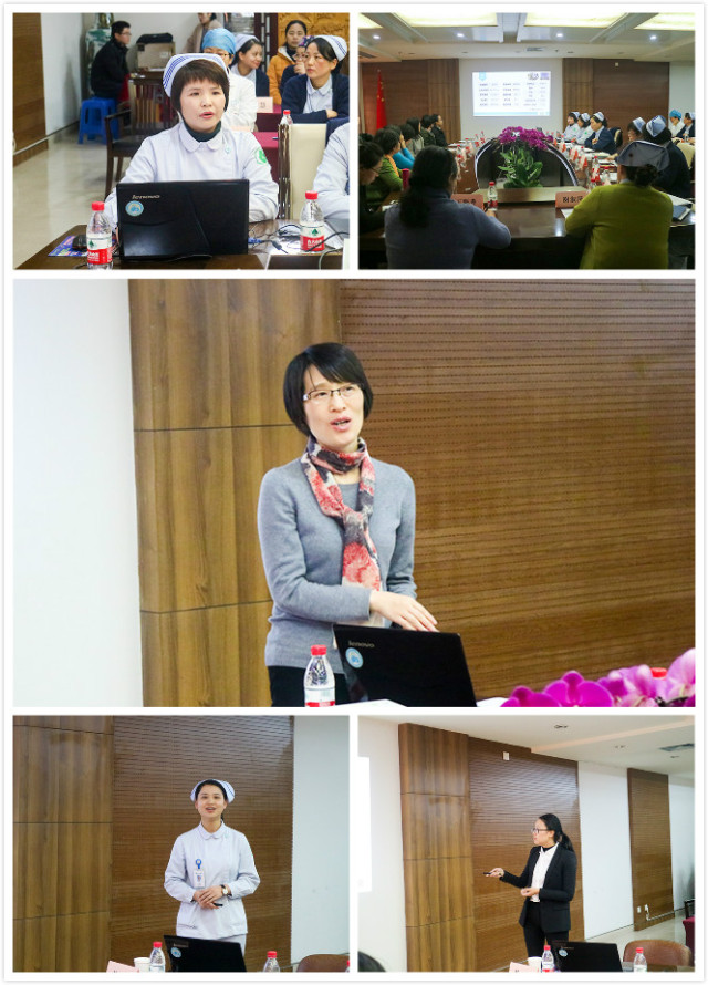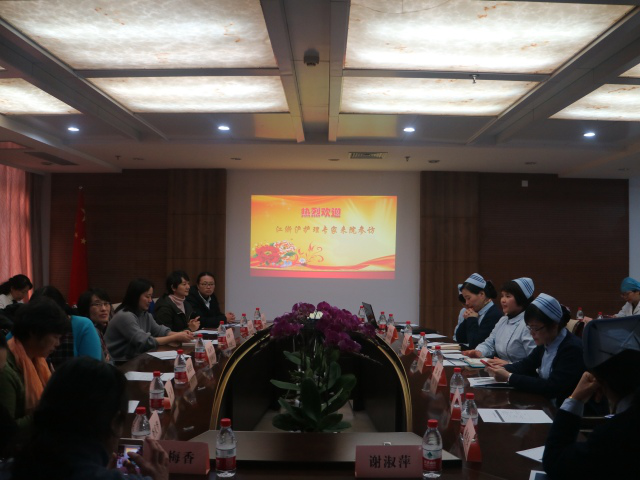 我院于2009年成立PICC置管室,经过近10年的发展,现更名为静脉治疗护理中心;我院在省内率先应用集中置管的模式,2011年开展B超引导下改良塞丁格技术的PICC置管,极大的提升了PICC上臂置管成功率,中心还开展了心电导联定位技术下的PICC置管,经下肢PICC置管等新技术,目前年置管量高达7000余例。我院于2008年成立静脉专科护理小组,在专科护士的技术引领下,采用问题管理的模式,进行全院静脉导管的质量管理,通过建立静脉导管数据库,采用大数据分析整改工作中的问题,运用先进的质量管理方法进行静脉治疗质量控制。静脉治疗中心各位老师和病房护士长现场为大家介绍了我院静脉专科品牌特色,我们借用信息化平台对每位置管患者的基本信息,随访信息,并发症相关信息进行采集等,将科研思维运用于实际工作中。随行代表认真参与,并针对医院静疗团队建设、优质护理服务的深入开展提出咨询和建议,气氛融洽,纷纷表示感受出我院的精细化专科管理优势和仁爱宗旨。