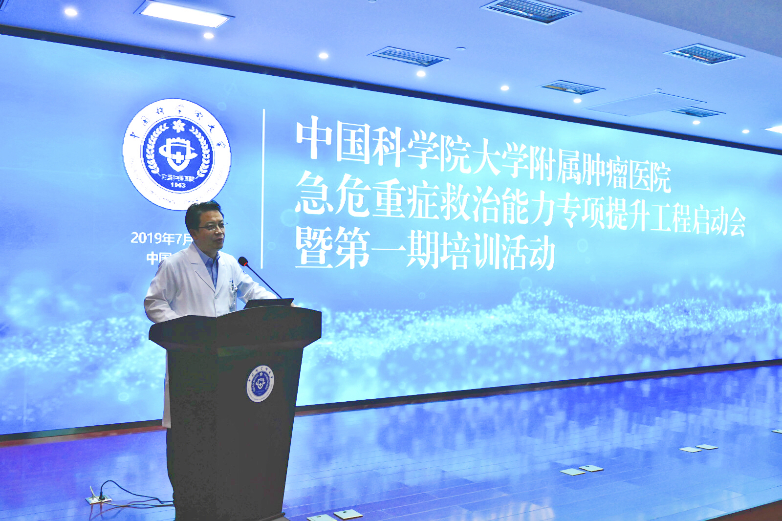 急危重症救治能力是体现肿瘤专科医院临床业务水平的一项重要指标,同时也是患者生命安全的重要保障,为提升这一能力,医务科特举办危急重症救治能力专项提升工程系列培训活动。7月19日上午7时,该项目启动会暨第一期培训活动于我院国际学术报告厅如期举行。阴雨绵绵的清晨没有阻挡广大医务人员们学习的热情,将近300名临床医生齐聚一堂,国际报告厅内座无虚席!会议由医务科副科长朱玉萍主持,党委副书记、副院长程向东出席会议并发表致辞,重症监护室柳开忠主任作“呼吸衰竭的诊治”主题培训。此外医务科科长朱滔,副科长李方印,膳食科科长姚东等出席本次培训活动。