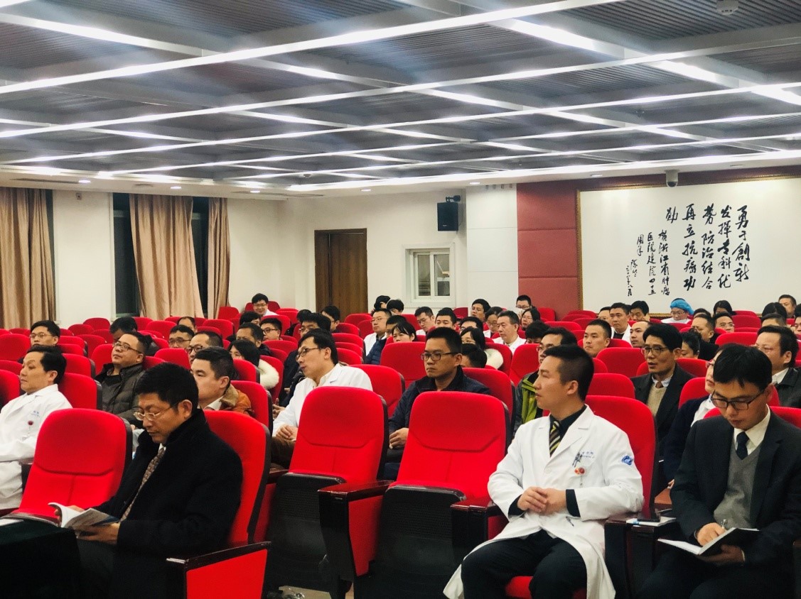 三级医师作为医院发展骨干,不仅要脚踏实地投身临床,也要仰望天空积极了解国家卫生管理政策和要求,加强医务管理知识的学习,提高医务管理水平,才能引领好整个团队前进。为了让所有三级医师更深入理解国家卫健委全面推行的DRGs付费改革政策和我院医务管理相关要求,浙江省医保中心副主任邵伟彪、我院医务部副主任李方印、质量管理部主任杨永挺、病案统计科胡欣、入院准备中心蔡树萍、医保物价部主任吴凤琴、医院感染管理部主任俞洋分别为大家解读了DRGs付费、医务管理知识等热点医疗政策和与临床工作密切相关的医务管理要求,并在培训会现场为大家答疑解惑。