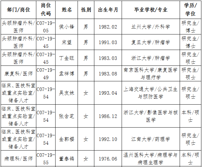 根据《浙江省省属事业单位2019年特殊专业技术岗位招聘信息》,经报名、资格审查、面试、体检和考核,现确定下列人员为我单位拟聘用人员并公示如下: