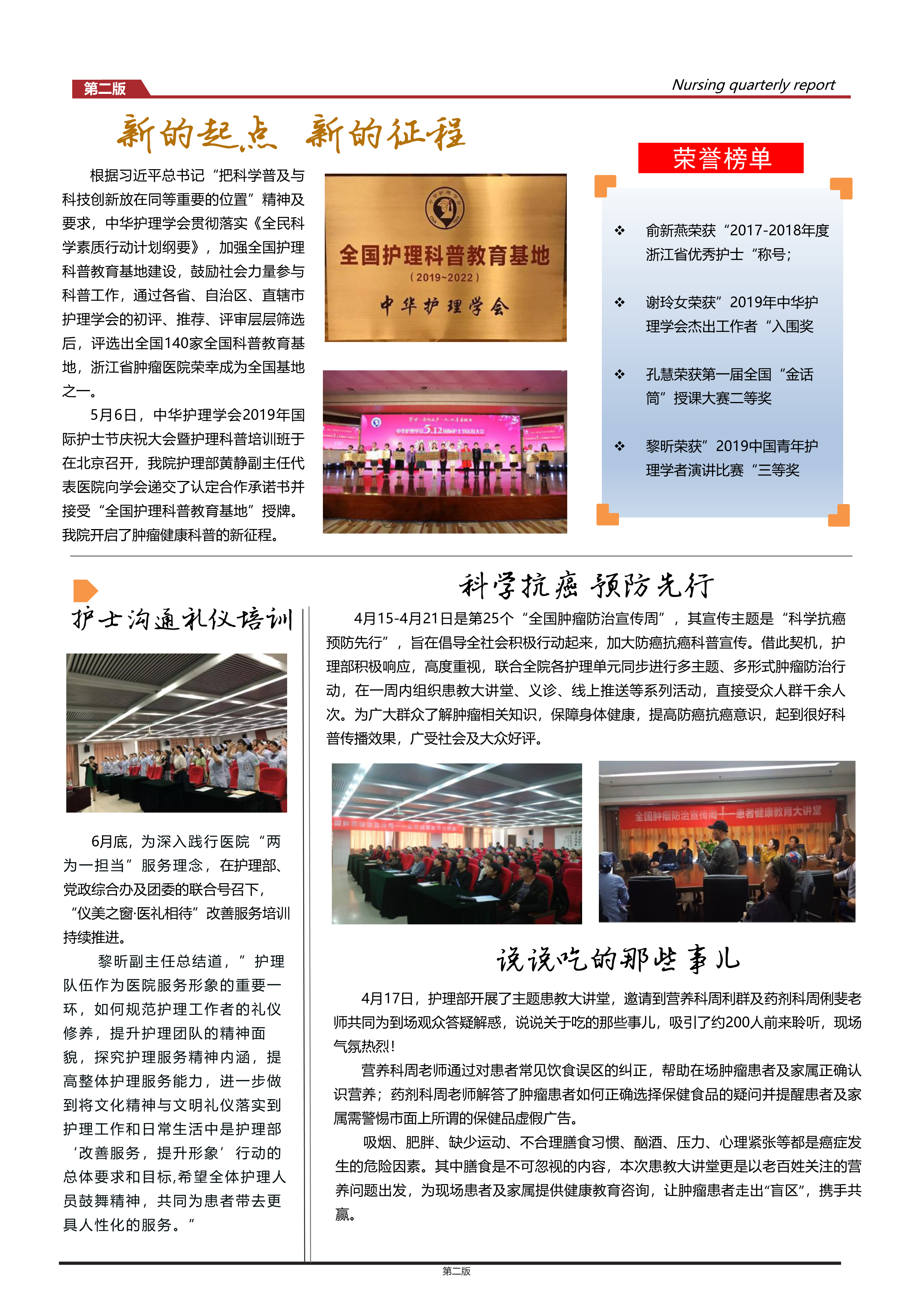 2019年中国科学院大学附属肿瘤医院《护理季报》第2期