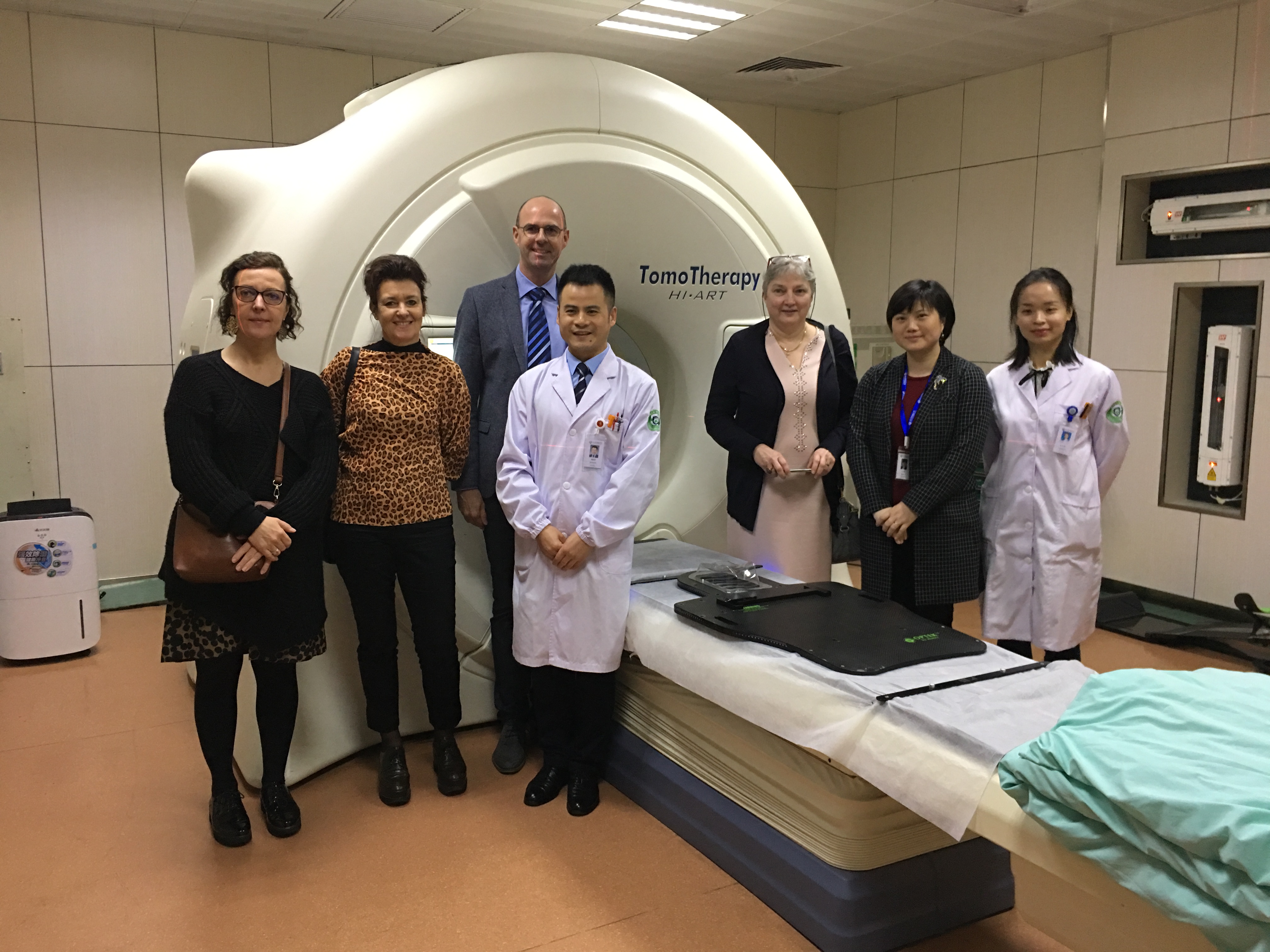 2019年3月29日,比利时AZ Sint-Jan Brugge 医院放疗科主任Geertrui Demeestere 医生,AZ Delta Roeselare医院放疗科主任Lorenzo Staelens 医生,放射科主任Jesse Marranes医生,比利时西弗兰德省外事处官员Ann Tavernier 女士和Kristien Vandamme 女士来我院访问交流。我院邵国良副院长,王晓稼院长助理与放疗科、放射科、介入病区、放射物理室、核医学科、门诊医务人员热情接待了来宾一行,并进行了深入的学术交流。