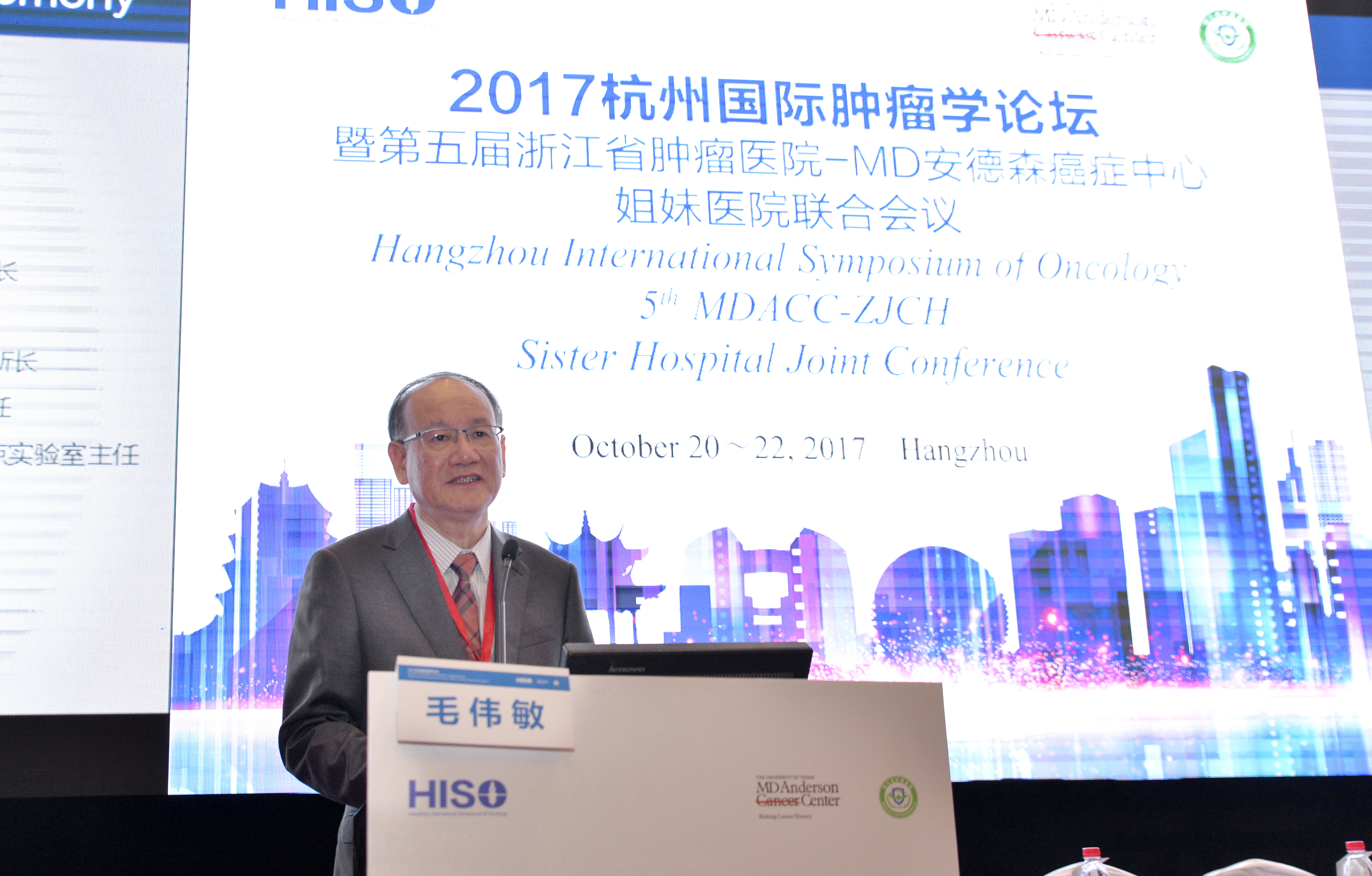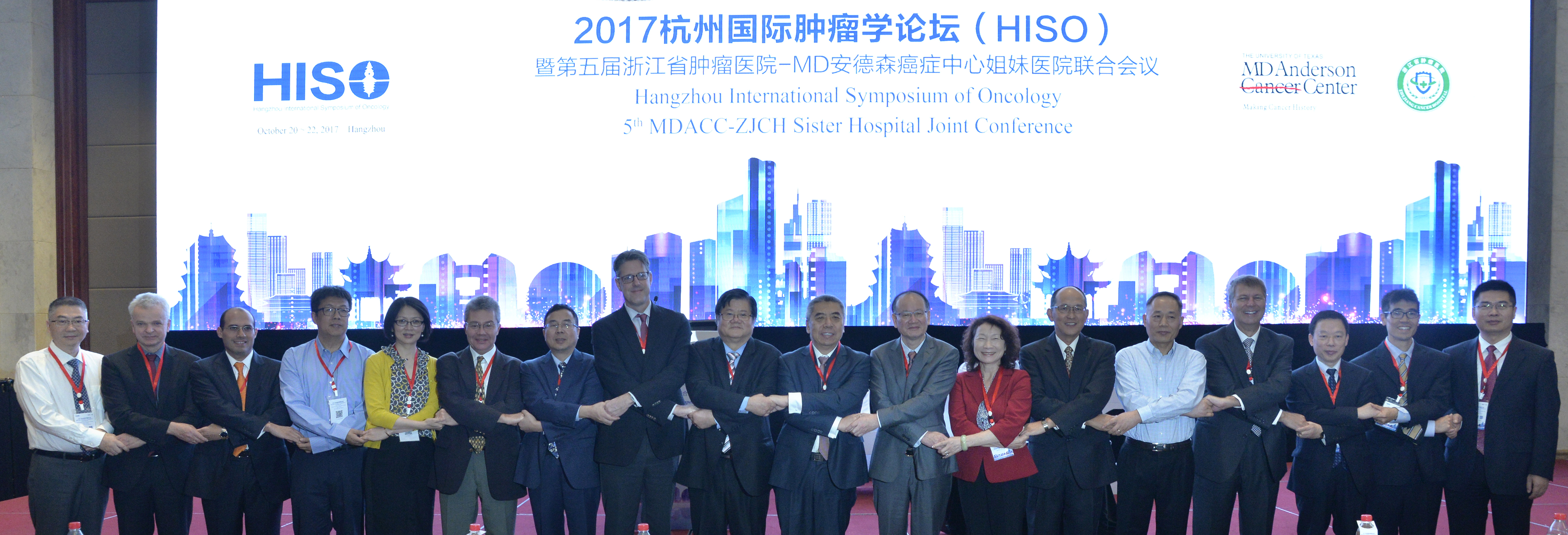 为充分把握国际肿瘤学研究前沿,进一步促进国内、外肿瘤学领域的交流和合作,2017年10月21日,由浙江省肿瘤医院与美国MD安德森癌症中心联合主办,肿瘤学杂志社、浙江省癌症中心、浙江省肿瘤研究所协办的“2017年杭州国际肿瘤学论坛(HISO)暨第五届浙江省肿瘤医院-MD安德森癌症中心姐妹医院联合会议”在美丽的西子湖畔盛大开幕。