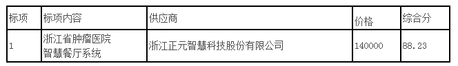关于浙江省肿瘤医院智慧餐厅系统项目院内招(议)标结果公示