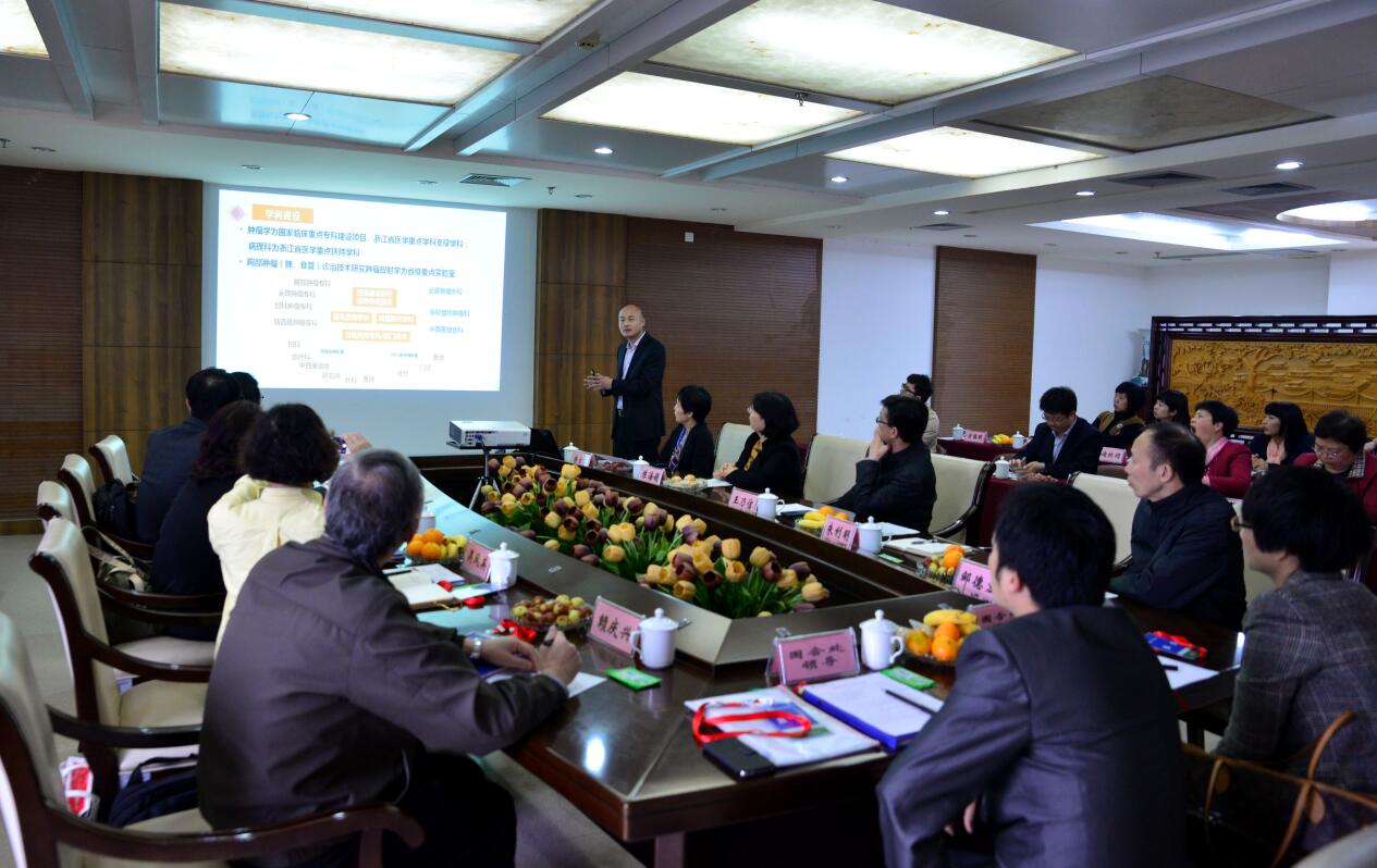 双方互相介绍参加交流活动的成员后,王院长对台湾考察团的来访表示热烈的欢迎。考察团团长蔡素玲董事长则介绍了台湾在医院评审、质量管理、医学教育、癌症筛查等方面的经验和特色做法。院办朱利明副主任向台湾同胞作了医院总体情况介绍。交流会上,与会双方就海峡两岸医院职能、晚期病人临终关怀模式、肿瘤诊治进展、癌症筛查等方面的情况展开了热烈的讨论。