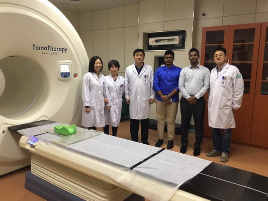 这是我院首次与国外院校联合培养研究生,之后孟加拉国Gono Bishwabidyalay大学每年将选派2名研究生来我院放射物理室学习,并将在共同关心的领域开展联合研究项目。两名学生将在我院放射物理室王彬冰、杨双燕两位导师的指导下,完成他们的毕业论文和相关科研工作。目前两名学生已在螺旋断层治疗和三维剂量重建两方面开展科研工作。
