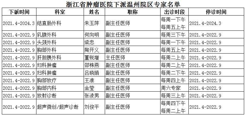 为进一步方便患者就医,现将2021年4月份开始下派温州院区需长期停诊专家公布如下: