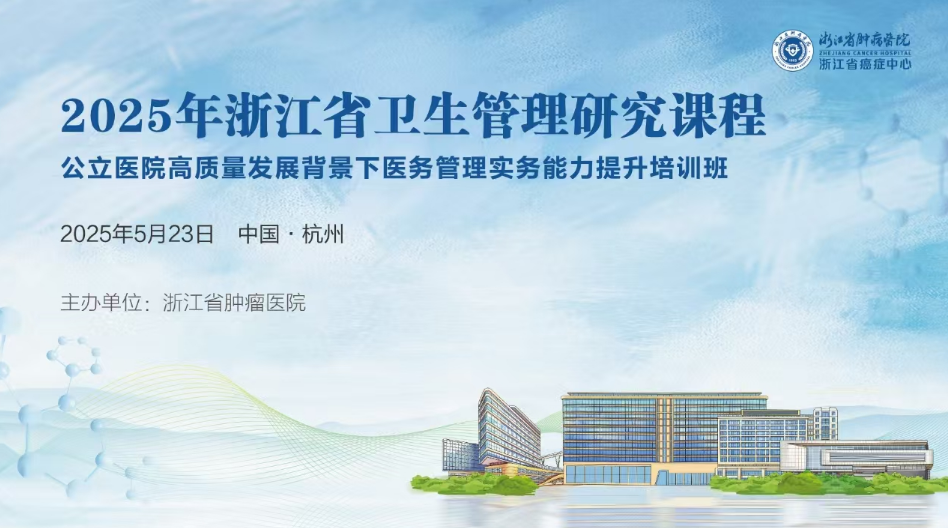 2025年5月23日,由浙江省肿瘤医院医务部主办的2025年浙江省卫生管理研究课程——“公立医院高质量发展背景下医务管理实务能力提升培训班”在杭州成功召开。本次培训紧扣国家《关于推动公立医院高质量发展的意见》政策导向,聚焦公立医院转型发展需求,助力医务管理人才能力提升,吸引了全省医疗卫生单位的百余名管理者参与。