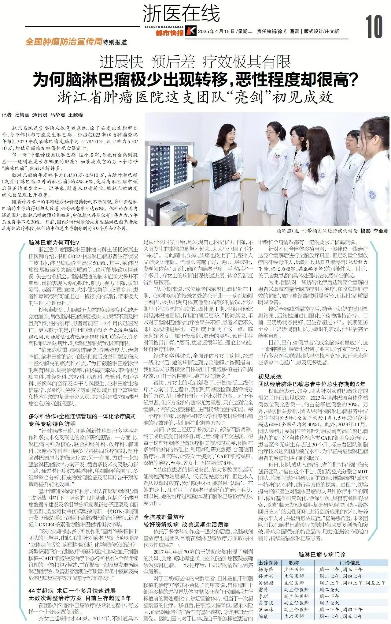 淋巴系统是重要的人体免疫系统,除了头发以及指甲之外,每个部位都可能发生淋巴瘤。根据《2023浙江省肿瘤登记年报》,2023年我省淋巴瘤发病率为12.78/10万,死亡率为5.50/10万,均位居癌症发病谱和死亡谱前十。