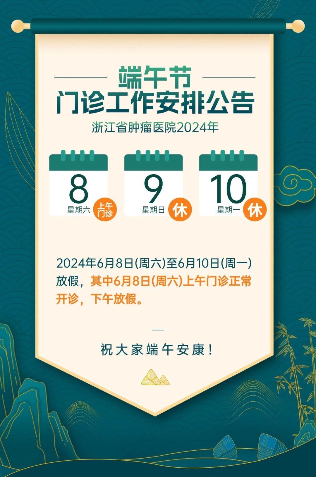 根据《国务院办公厅关于2024年部分节假日安排的通知》(国办发明电〔2023〕7号)精神,2024年我院端午期间门诊安排如下: