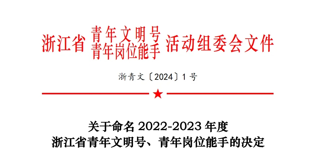 根据浙卫青文办〔2024〕1号《关于命名2022-2023年度浙江省青年文明号、青年岗位能手的决定》我院头颈外科、科研部通过逐级考评、遴选推荐,荣获2个“浙江省青年文明号”集体。