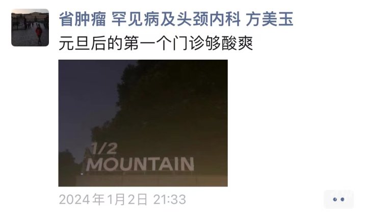 “元旦后的第一个门诊够‘酸爽’。”1月2日,2024年第一个工作日。当晚9点半,终于结束了一天的门诊,浙江省肿瘤医院罕见病及头颈内科主任方美玉主任医师发了这样一条朋友圈。