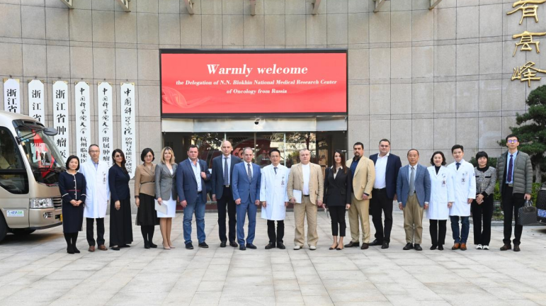 11月20日,俄罗斯卫生部下属布洛欣国家肿瘤医学研究中心代表团(以下简称“代表团”)一行十人到访浙江省肿瘤医院。双方于2019年签署合作谅解备忘录,此次访问为疫情后深化双方在肿瘤领域的医疗合作,推动中俄医疗卫生事业发展按下了启动键。