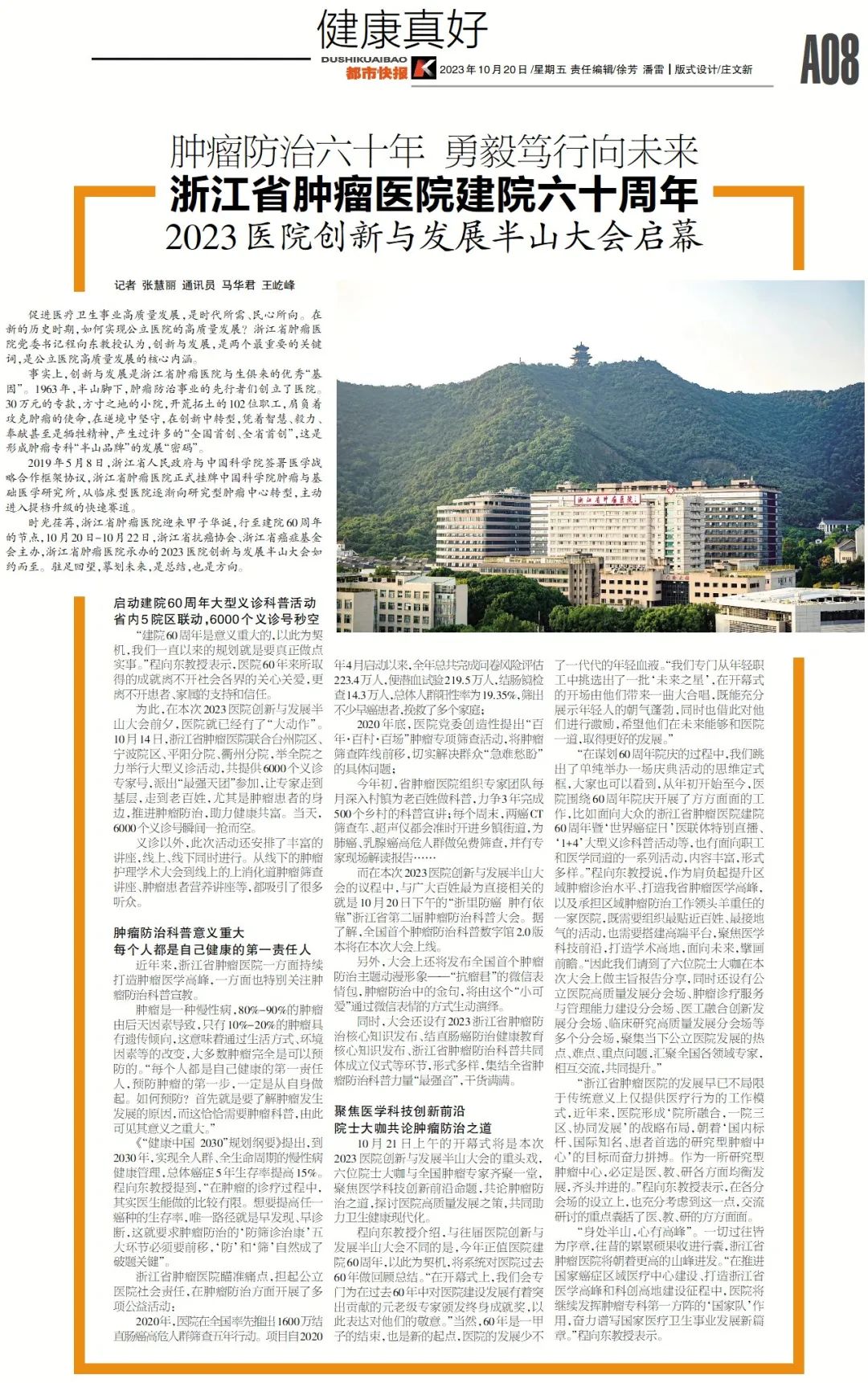 肿瘤防治六十年,勇毅笃行向未来。在丹桂飘香的金秋十月,浙江省肿瘤医院迎来了建院60周年。10月14日,浙江省肿瘤医院总院联动四个院区(分院),在省内5地同时举行大型义诊活动以及健康讲座等系列活动,为健康中国助力,当天的义诊活动,6000个义诊号被一抢而空,各地的讲座座无虚席。