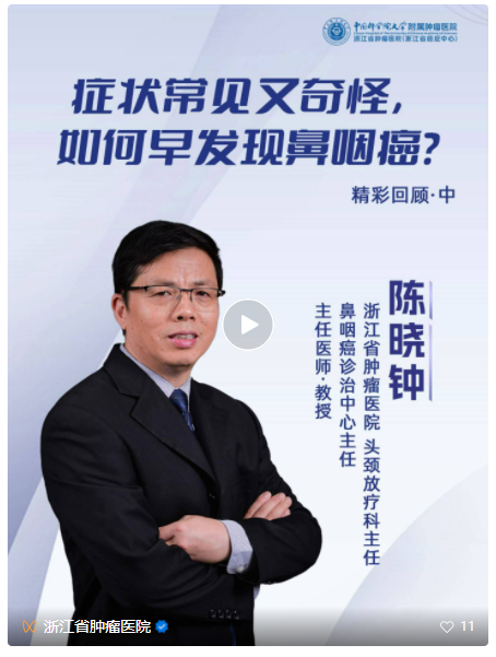 近日,浙江省肿瘤医院 名医科普直播间邀请到 头颈放疗科主任鼻咽癌诊治中心 主任陈晓钟教授 直播中,许多朋友都非常 关注鼻咽癌的防治