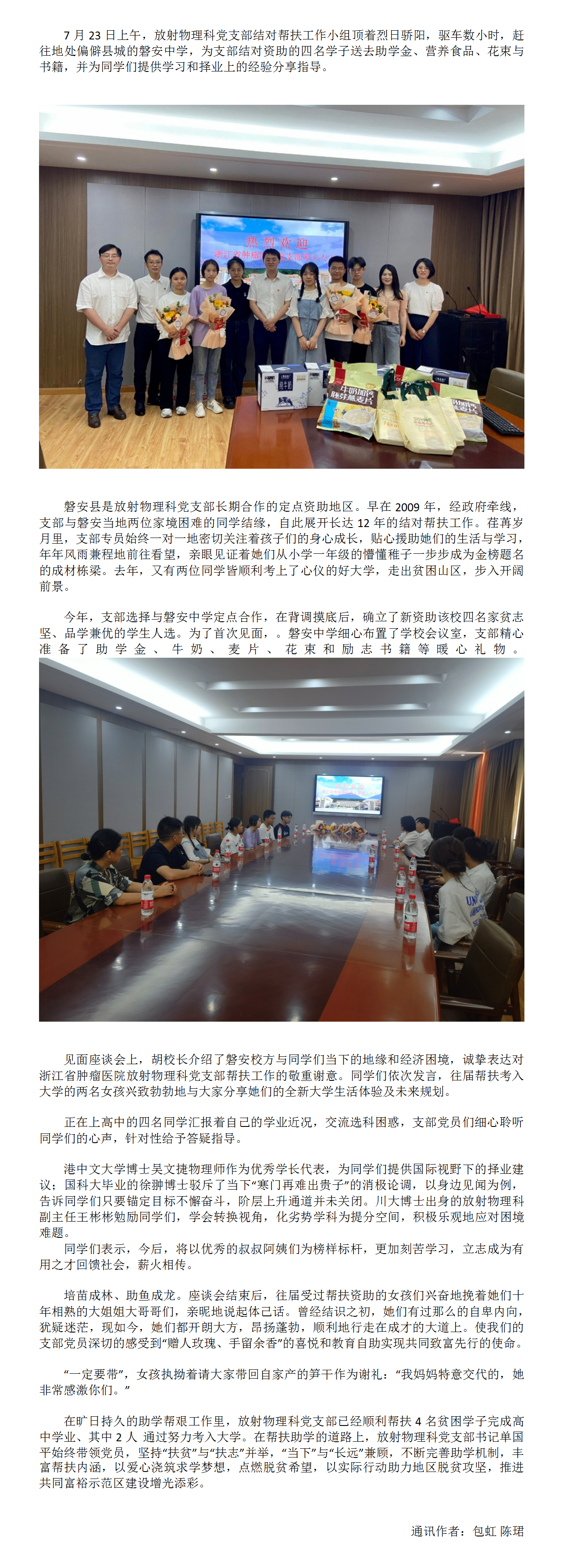 放射物理科党支部:“扶贫”与“扶志”并举 “当下”与“长远”兼顾