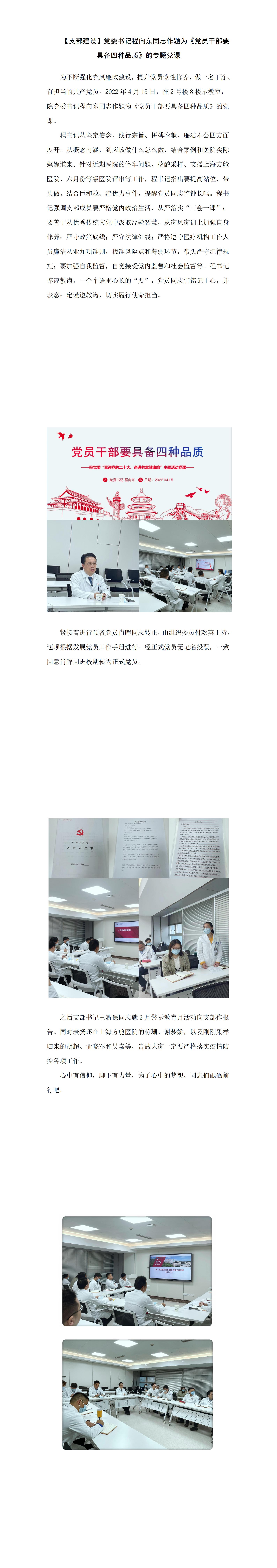 首页- 党群工作- 党建行风- 基层党建- 【支部建设】党委书记程向东同志作题为《党员干部要具备四种品质》的专题党课