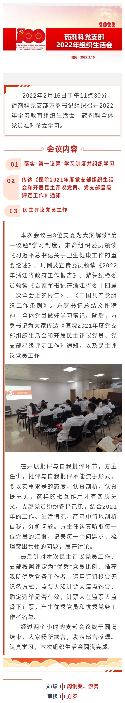 首页- 党群工作- 党建行风- 基层党建- 【支部建设】药剂科党支部召开2022年组织生活会