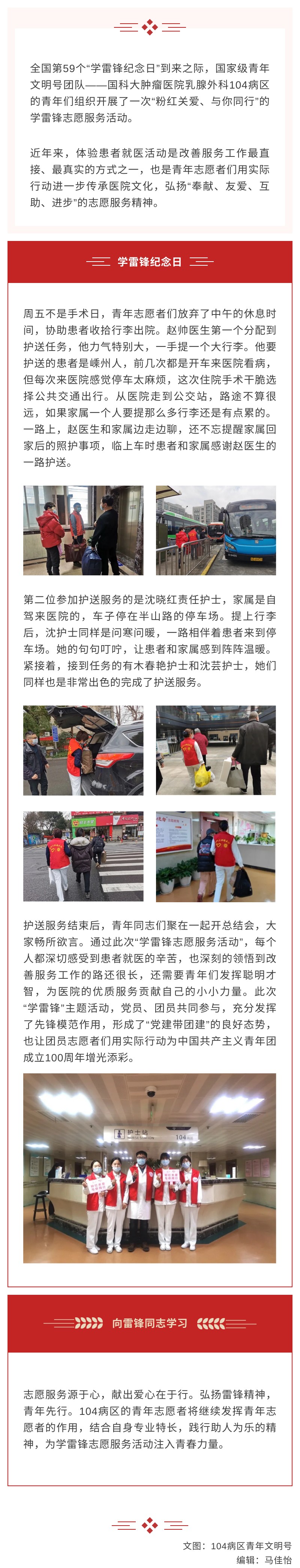 “粉红关爱,与你同行”——记国家级青年文明号104病区开展“学雷锋志愿服务”活动