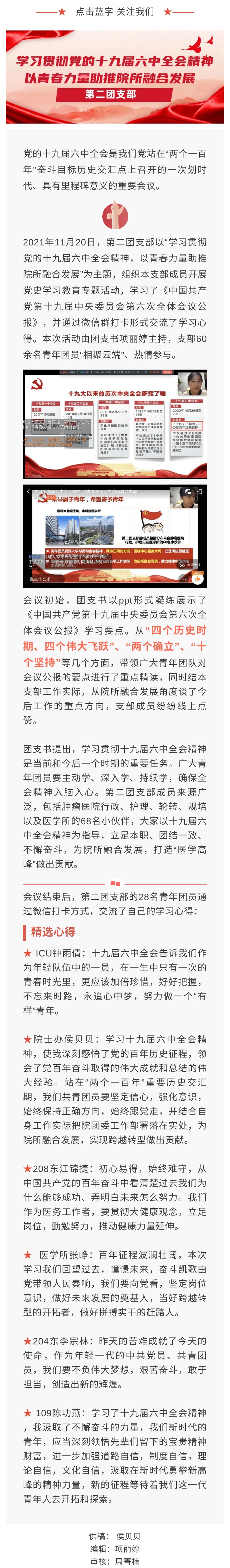 学习贯彻党的十九届六中全会精神,以青春力量助推院所融合发展 —第二团支部进行团课集中学习