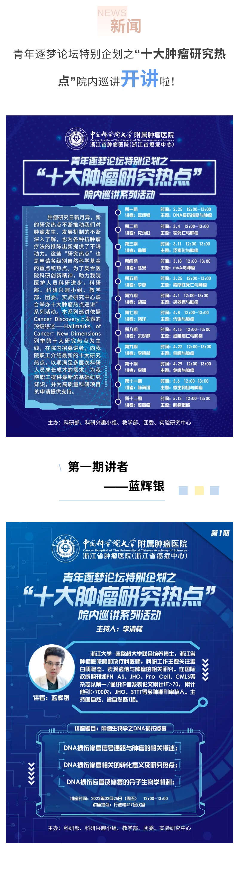 快来围观——青年逐梦论坛特别企划之“十大肿瘤研究热点”院内巡讲开讲啦!