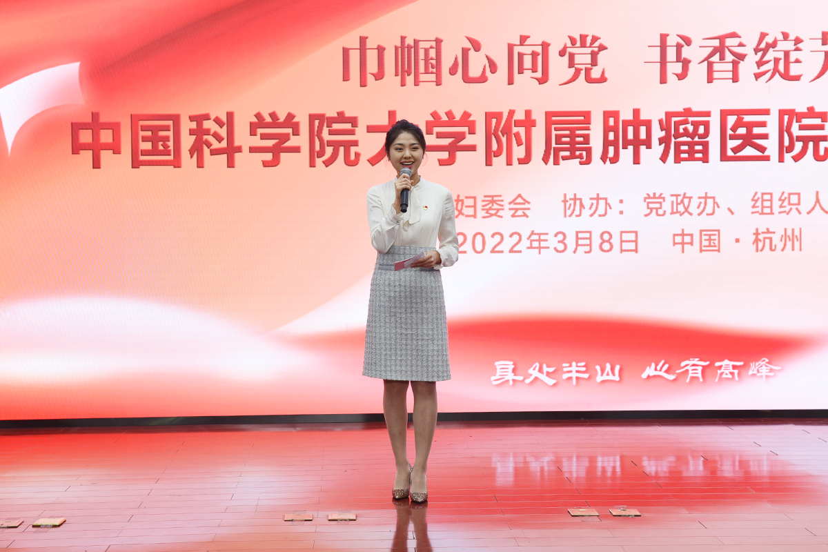 卞悦主任为全院妇女送上了三句话:一是巾帼勇担当,向你们致敬。医院女职工有的逆行而上抗疫,舍小家为大家,彰显巾帼大爱;有的长年累月坚持防癌抗癌一线,体现了巾帼力量;有的在列车上帮助产妇分娩,演绎了温暖人间的巾帼故事。二是柔肩扛重任,向你们致谢。既是职业女性,又是母亲、妻子、女儿,用坚韧和奉献扛起了事业和家庭的担子,撑起了医院建设发展的半边天。三是展现新风貌,与你们共勉。今天的巾帼读书会非常契合新形势要求,希望大家多读书、读好书,让心灵得到成长、精神得到涵养、素质得到提升,展现新时代女性的思想之美、文明之美、内涵之美。