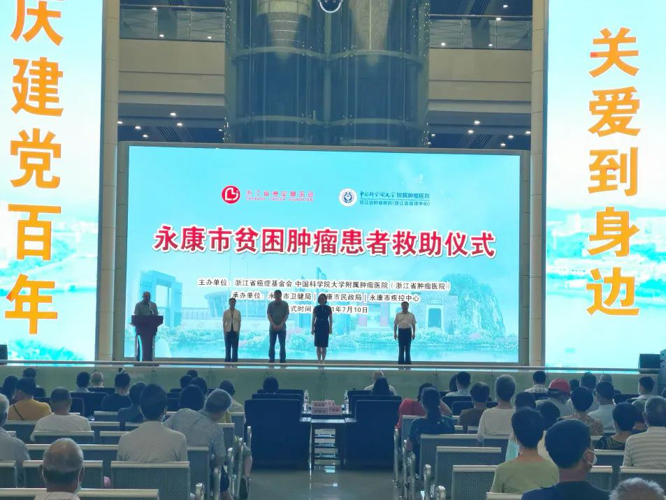 7月10日上午,我会贫困肿瘤患者救助仪式暨大型义诊活动在永康市举行。本项目由浙江省癌症基金会、中国科学院大学附属肿瘤医院(浙江省肿瘤医院)主办,永康市卫健局、市民政局、市疾控中心共同承办。