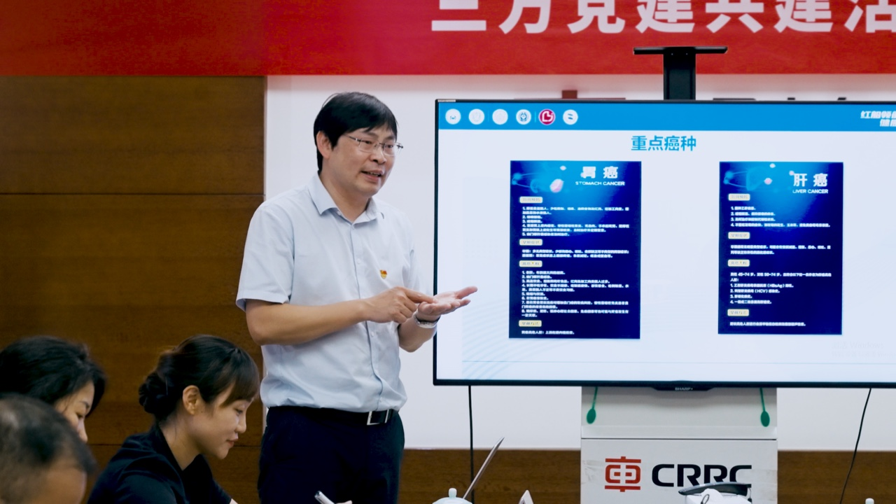随后三方党支部介绍支部情况,签订三方党建共建协议,开展党建品牌活动——第24期勇立潮头大讲堂。大讲堂内容包括支部书记杜灵彬和体检中心党员沈燕分别做《常见癌症的发生与预防策略》和《关爱生命,科学防癌》宣讲。两位专家从癌症发生、预防、筛查等方面进行了全方位、多角度的科普,让与会党员了解癌症防治知识,提高大众对癌症的认识,提升防癌知识水平,规避误区,健康生活。