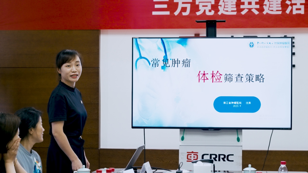为了全面推动学习贯彻习近平新时代中国特色社会主义思想主题教育走深走实,全面落实“红色领杭·奉献亚运”大考大赛具体要求,2023年9月18日,我院行政后勤第八、基金会联合党支部联合杭州日报城市新闻中心党支部和杭州中车车辆有限公司制造党支部开展“护航亚运 肿瘤科普行动进企业”“党媒连心·服务一线”“强基赋能·亚运护航”三方党建共建活动。