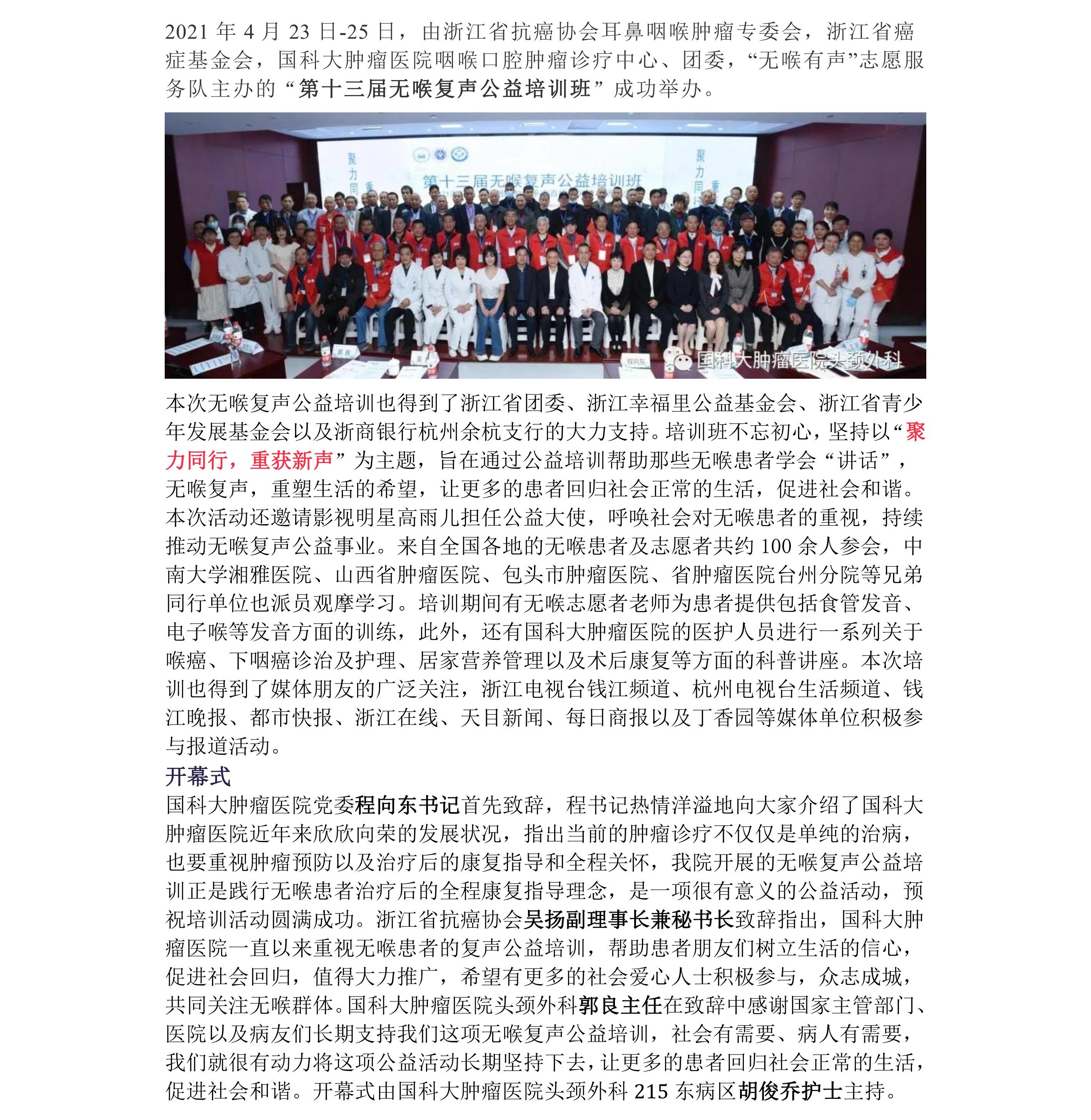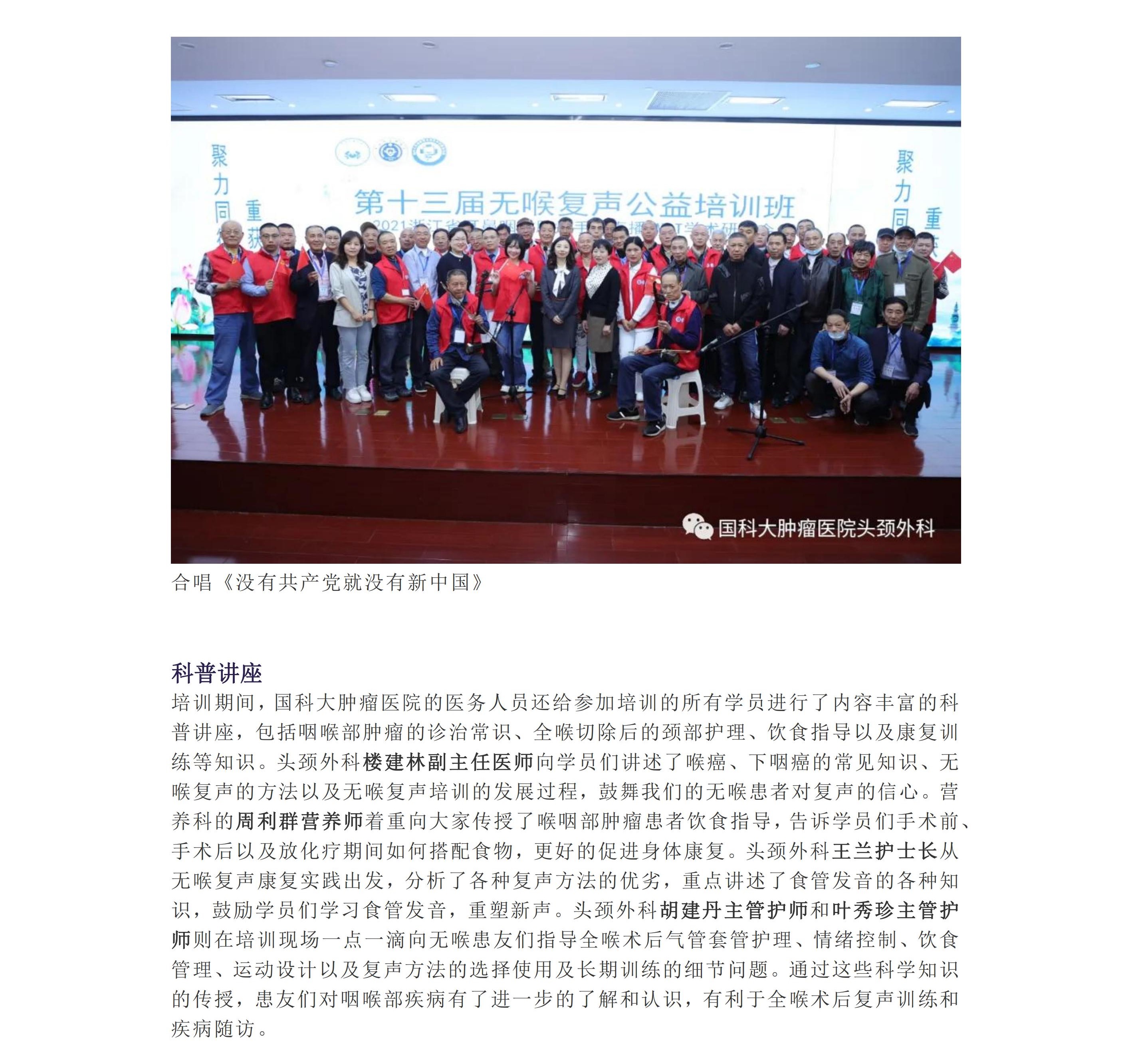 首页- 党群工作- 基层团建- 团建工作- 众志成城 不忘初心 聚力同行 重获新声--第十三届无喉复声公益培训班成功举办