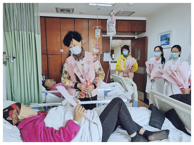 疫情关系,康复志愿者不能在病房内做过多的停留。简单的送花活动,给康复志愿者和患者们都带来了不同的体验,在这样一个寓意美好的日子里,祝愿患者们早日康复。祝愿疫情早日结束,让康复志愿者探访服务尽快回归。