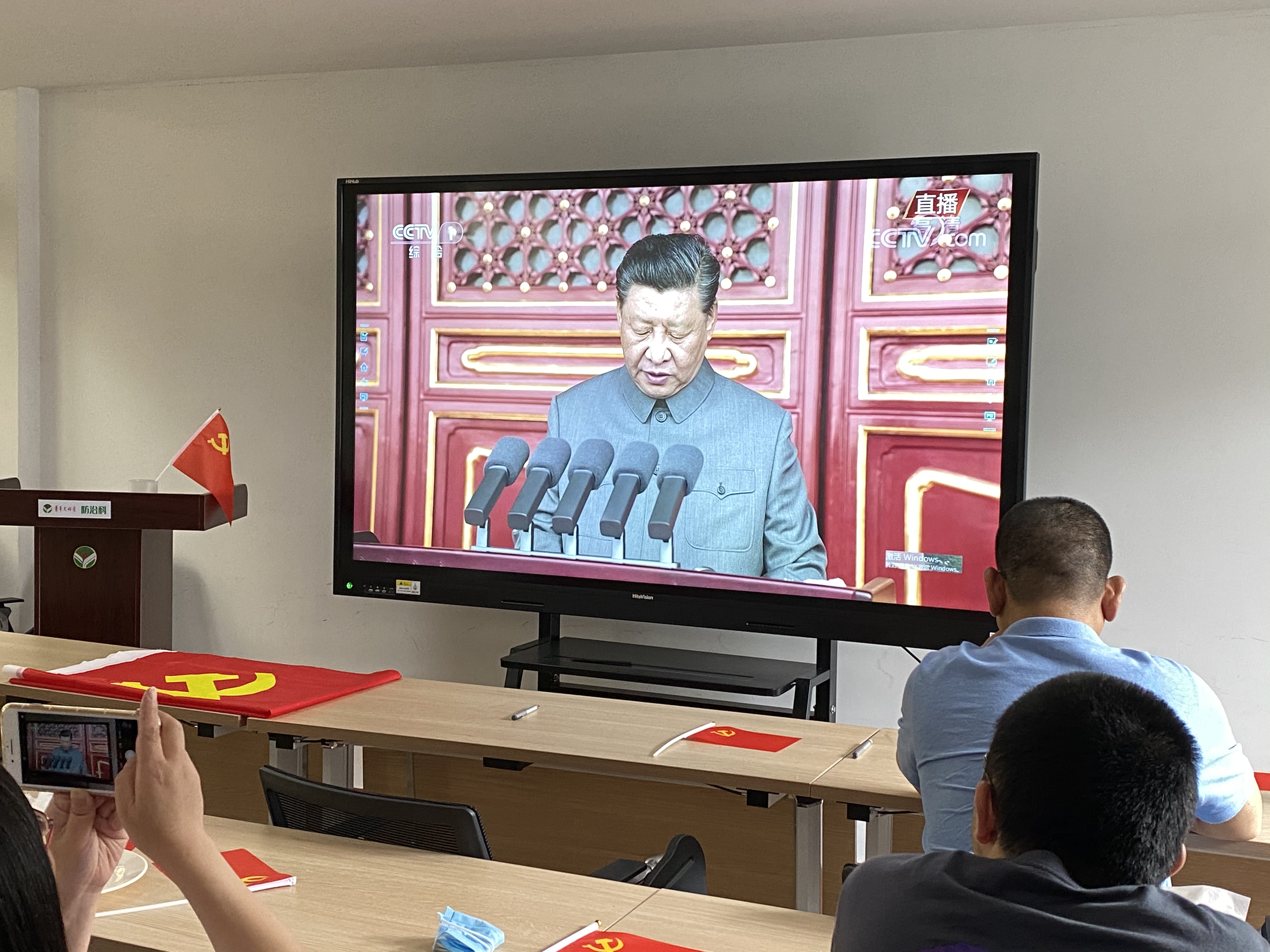 2021年7月1日上午,防治科青年文明号集体组织观看庆祝中国共产党成立100周年大会直播,第一时间学习领会习近平总书记在大会上的重要讲话精神,观看过程中大家心潮澎湃、掌声迭起,为我党实现第一个百年目标迈向第二个百年奋斗目标的伟大胜利而光荣自豪。