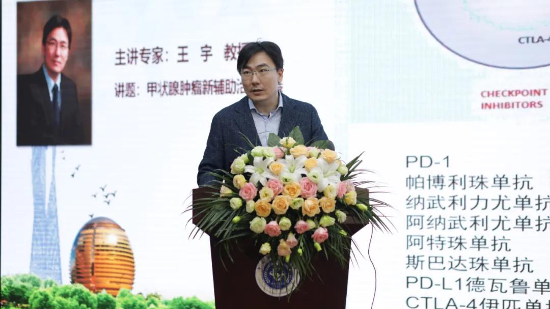 复旦大学附属肿瘤医院头颈外科主任王宇教授报告《甲状腺肿瘤新辅助进展》,详细报告了安罗替尼、法米替尼+PD-1等新辅助治疗局部晚期甲状腺癌的临床研究结果,并逐一展示了治疗的经典病例。