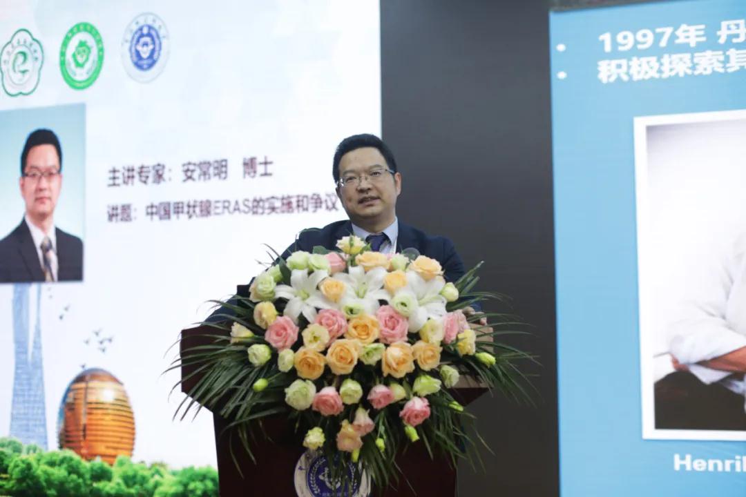 中国医学科学院肿瘤医院头颈外科副主任安常明教授报告《中国甲状腺ERAS的实施和建议》,解读了甲状腺加速康复外科(ERAS)的理念以及国内外实施甲状腺ERAS的状况,重点阐述了ERAS实施过程中术前、术中、术后的具体措施和注意事项。