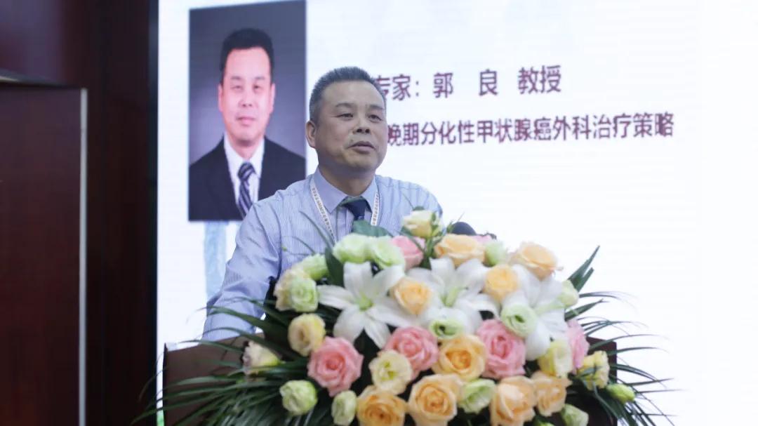 中国科学院大学附属肿瘤医院头颈外科主任/主任委员郭良教授报告《晚期分化型甲状腺癌的外科治疗策略》,阐述了晚期分化型甲状腺癌流行病学、临床表现、术前评估以及主要治疗原则,强调外科手术力争肉眼切干净的同时尽量保留功能,并逐一展示了晚期分化型甲状腺癌侵犯喉返神经、喉气管、食管、椎前筋膜、皮肤、咽旁淋巴结等部位的经典病例。