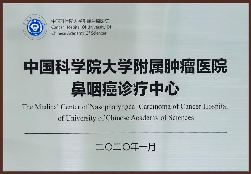 中国科学院大学附属肿瘤医院鼻咽癌诊治中心是华东地区规模最大的鼻咽癌诊治中心。拥有2.5个病区,138床位。是国内最早开展鼻咽癌调强放疗的中心之一,年均收治鼻咽癌1000余例,收治量全国第二、省内第一(占全省40%以上)。中心致力于建立浙江省鼻咽癌的全程管理示范中心,开展浙江省鼻咽癌高危人群评估、监测、筛查、危险因素管理、早诊早治及随访工作;建立浙江省鼻咽癌肿瘤样本库中心,推动浙江省肿瘤标本资源共建共享,针对目前诊疗中的疑难重大问题,如鼻咽癌的化疗耐药和放疗抗拒机制,着力进行攻关;制定和定期更新鼻咽癌规范化诊治流程;创建区域内鼻咽癌专科医师培训基地;组建难治性鼻咽癌诊治专家团队,治疗主要针对放化综合治疗期间进展,治疗后短期内复发,多发转移以及多线治疗后患者;组建区域鼻咽癌新药和新疗法的临床研究团队,主要开展前瞻性化学治疗,靶向治疗,免疫治疗以及新的放射治疗技术临床研究。