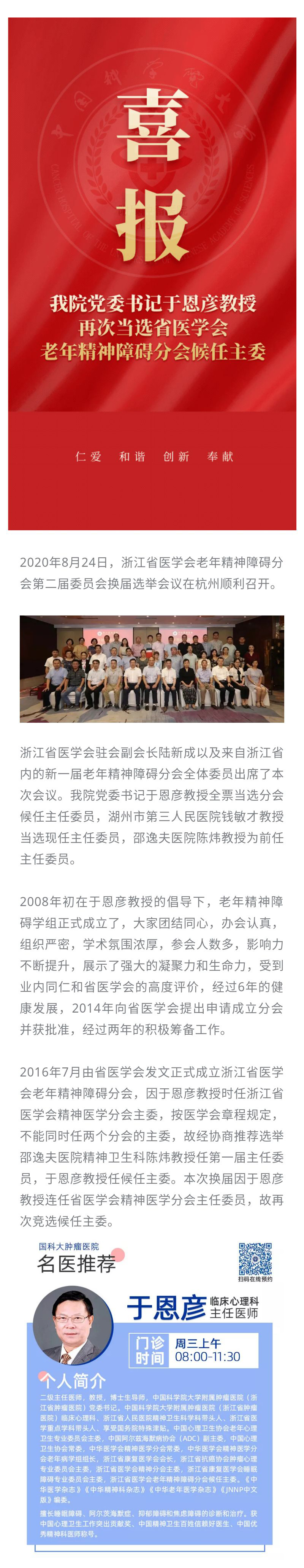 于恩彦书记再次当选省医学会老年精神障碍分会候任主委