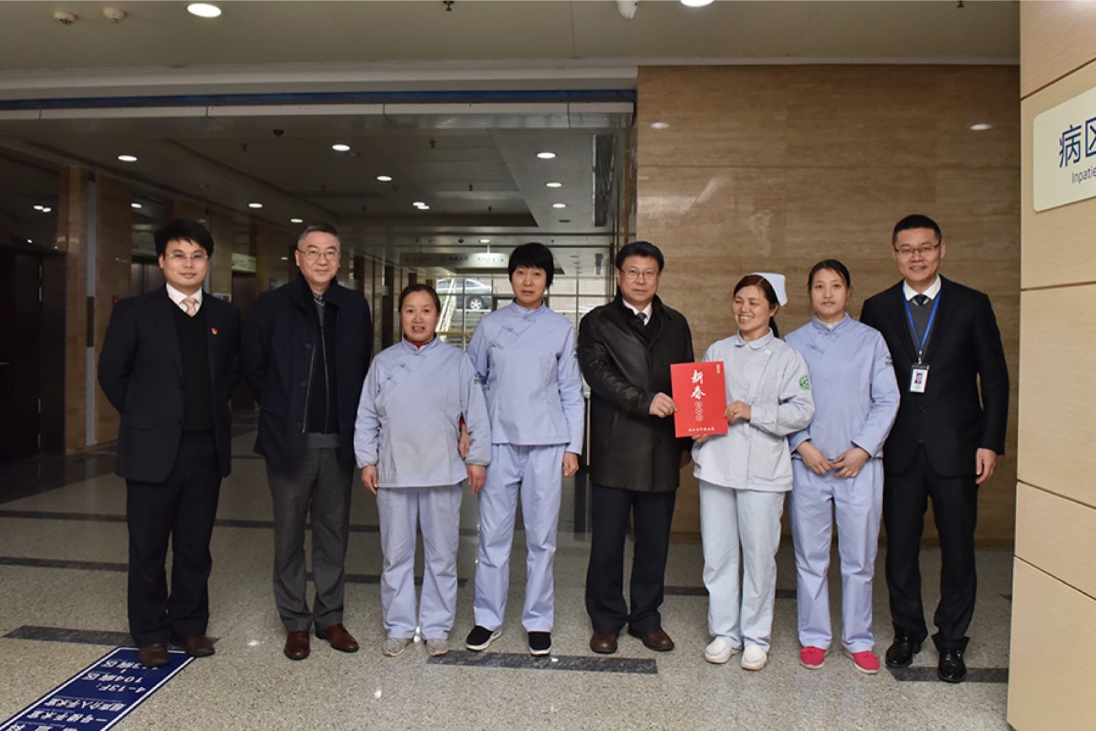 医院党委书记于恩彦和常务副院长陈明带领相关部门深入院区及病房,看望并慰问春节期间留院治疗的患者家属及值班员工,带去水果和慰问信,向他们致以诚挚的问候和节日的祝福。