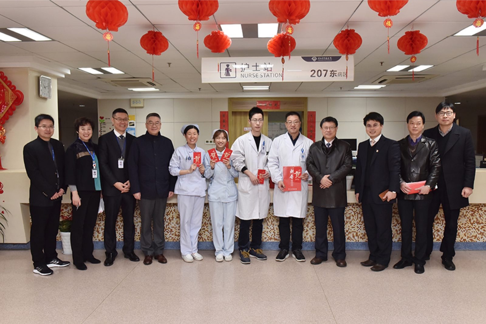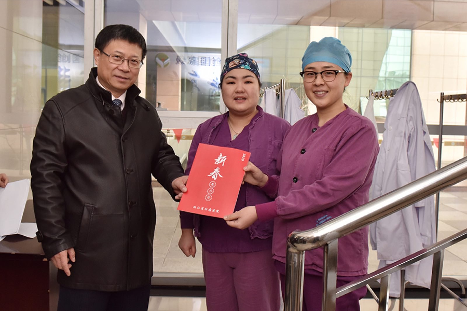 新春佳节,浙江省肿瘤医院有很多患者因需留院治疗而不能回家与亲人团聚;医务工作者也仍然坚守临床一线,守护健康安宁。除夕和大年初一,院领导班子向留院的患者及值守在临床和后勤一线的员工带去新春的美好祝愿。