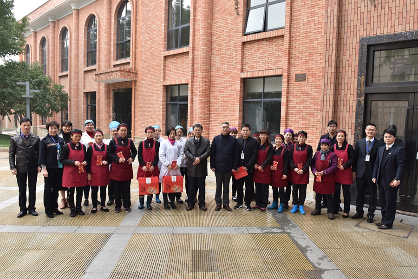 院领导将礼物和节日问候一一传递到患者和职工手里,一声声亲切的问候和新春的祝福温暖着坚守一线的员工。
