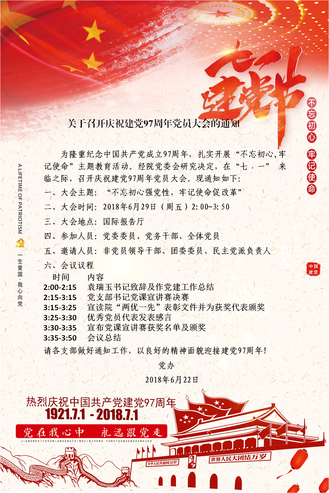 首页- 党群工作- 党建行风- 基层党建- 关于召开庆祝建党97周年党员大会的通知