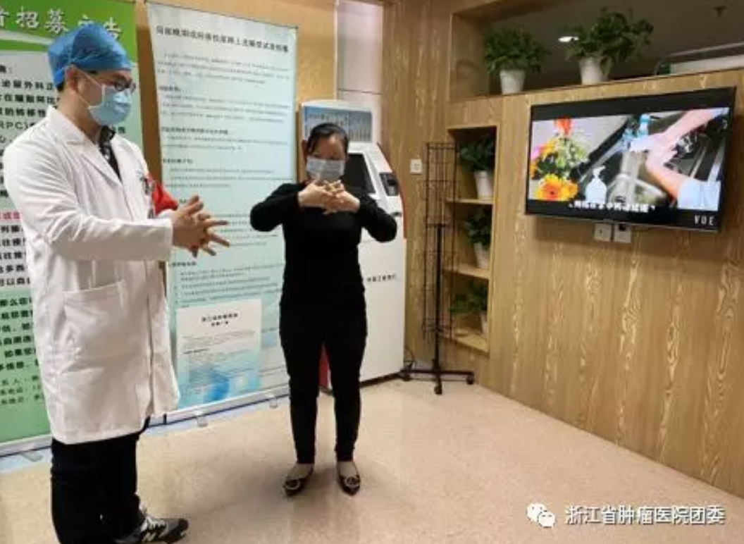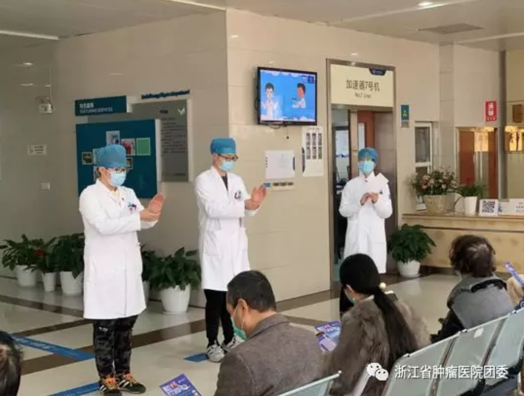 放射物理科、206东泌尿外科青年文明号通过录制防疫宣教视频并循环播放、分发防控手册以及实际演示防护注意事项等活动向患者及家属普及了新冠肺炎防控的注意事项以协助患者更好的完成治疗。