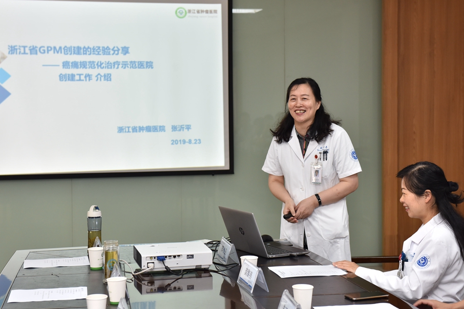 随后,张沂平主任就浙江省癌痛规范化治疗创建历程及我院癌痛规范化治疗创建工作作ppt介绍,着重对癌痛患者诊疗全程的信息化管理,如何把癌痛规范化治疗纳入全院医疗、护理质量管理考核等方面进行了详细介绍,通过持续质量改进,优化诊疗流程,让癌痛管理成为常态化工作,提高工作效率。