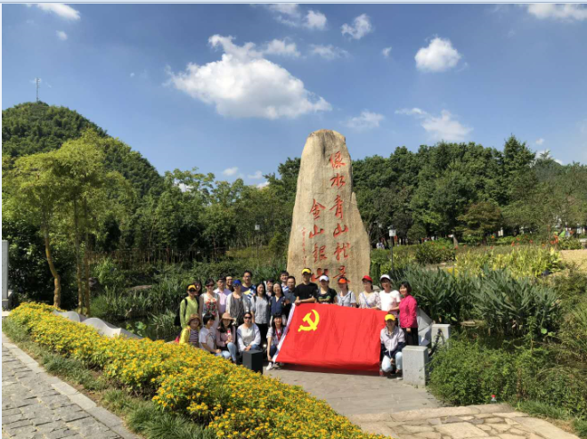 本次户外活动地点支部选择了习近平总书记“两山”理论的诞生地——安吉县余村。安吉余村,位于安吉县南部,天荒坪镇西侧,地处天目山北麓,因境内天目山余脉余岭及余村坞而得名,首批美丽乡村精品示范村。蓝天白云下的余村,水潺潺,山绵绵,荷塘莲叶碧,景美人和谐,我们实地感受美丽生态建设基地,美丽党建下的“绿水青山就是金山银山”,一幢幢林立的小洋房展示着这儿村强民富的幸福感。